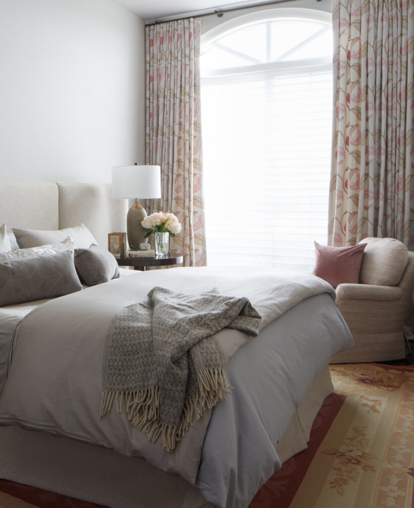 They are also great at muffling street noise, if that is something you contend with on a regular basis. From garbage trucks to car alarms and barking dogs, life in a city can be noisy and thick lined window coverings can be really helpful at dampening all. This bedroom has four windows split over two walls and so floor length curtains were a must!